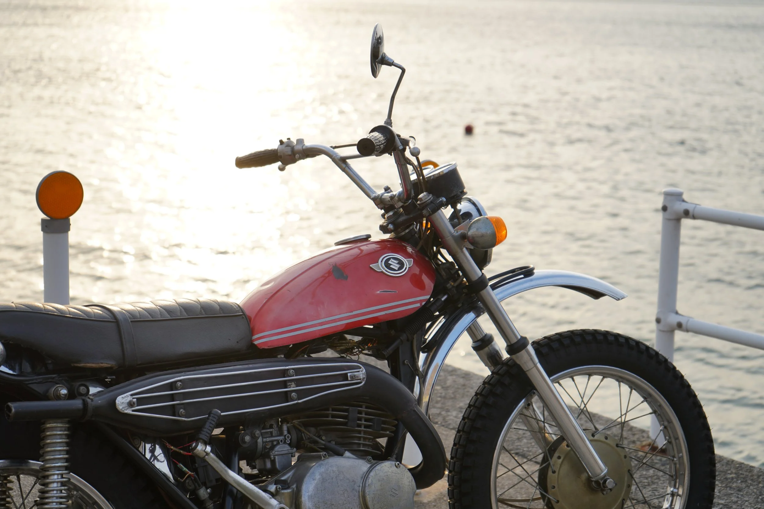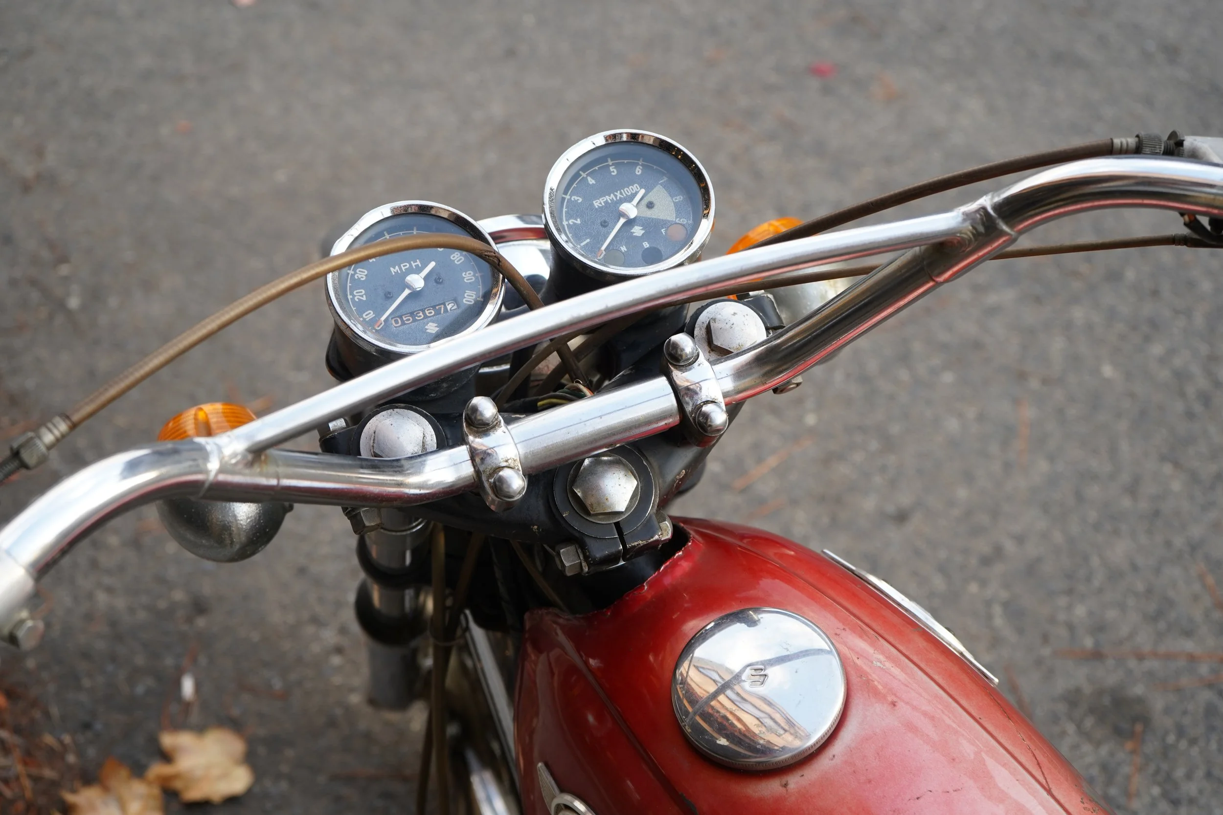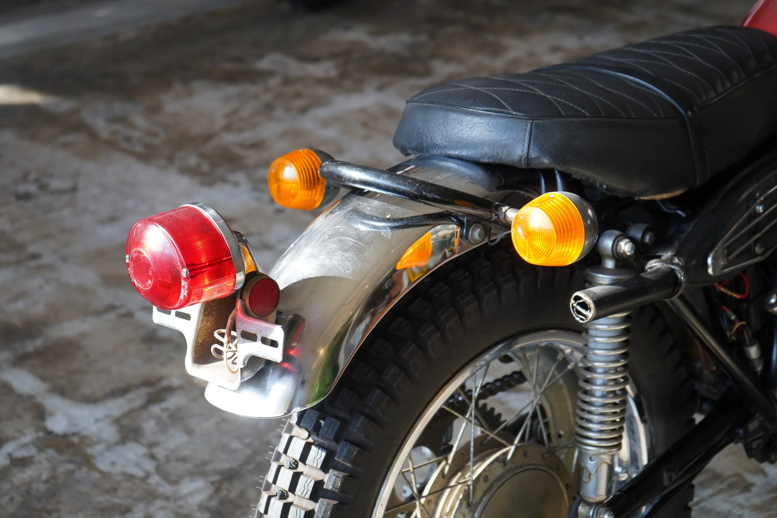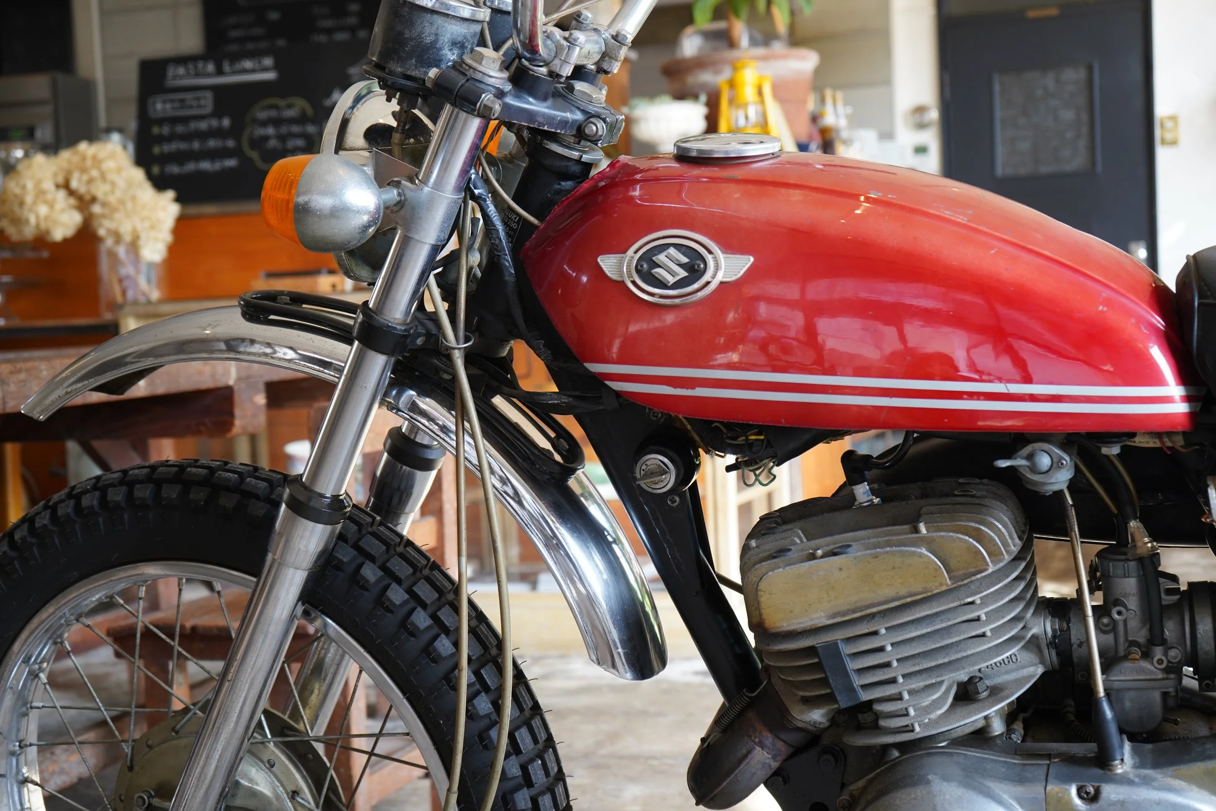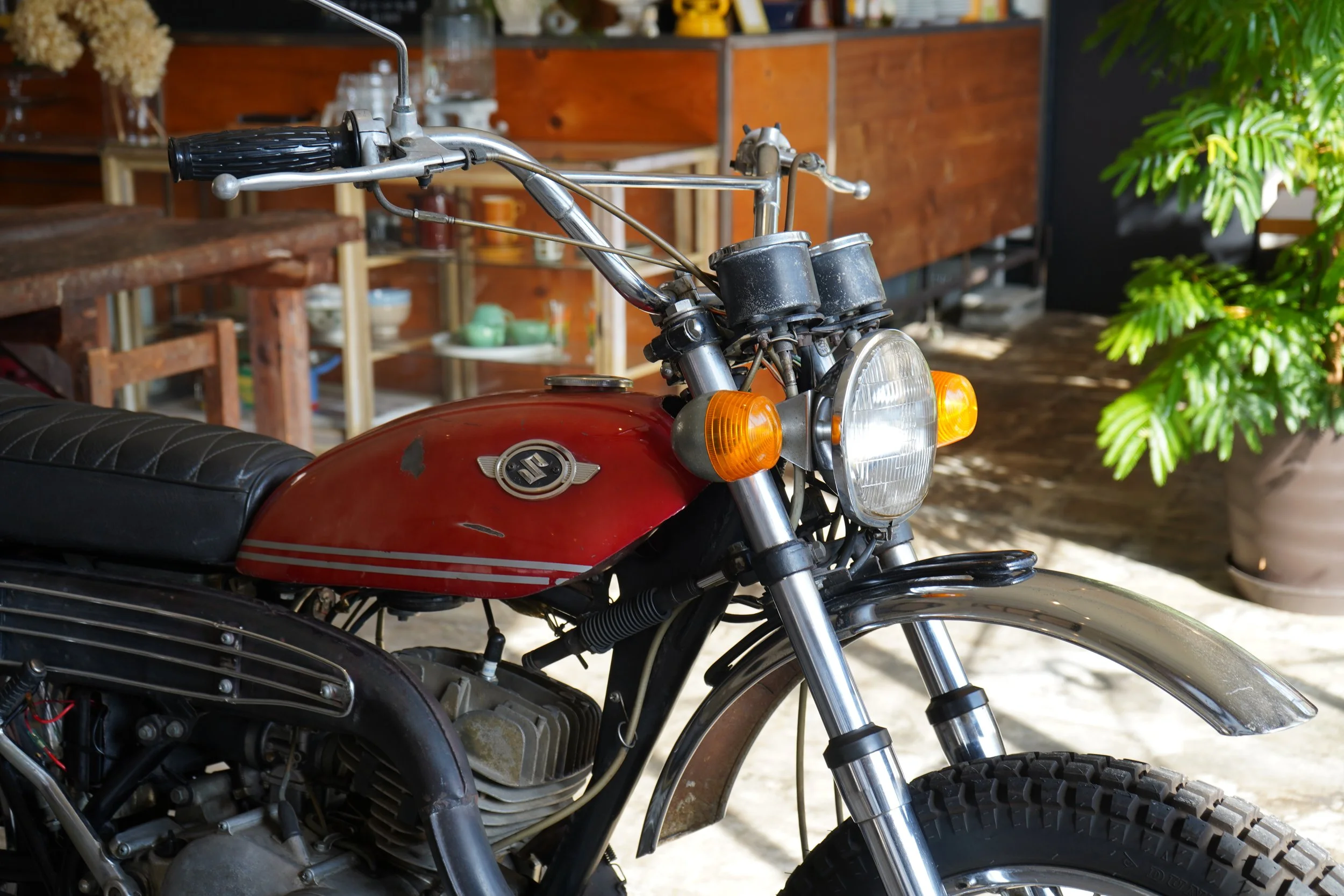 当時の赤系の色は日焼けで色が飛んでしまうのですが、いい具合に色が残り、タンクエンブレムと合わせて抜群の雰囲気。